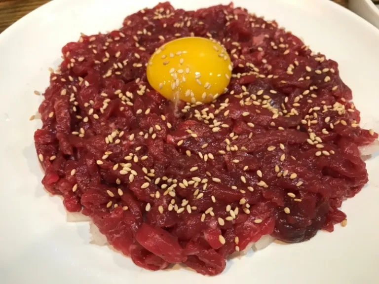 Korean snow pears are to-die-for. Not only do they taste great by themselves, they also make a refreshing match when pureed to season BBQ meat. It also works very well to give a unique, sweet-tangy yet delectable boost to raw dishes like this Yukhoe (raw beef) dish from Gwangjang Market since it has a clean and crisp yet moist texture.