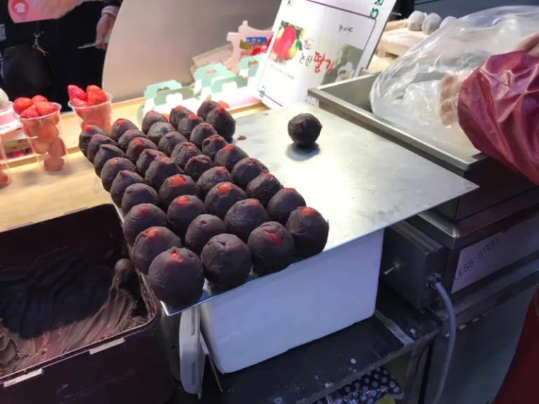 I promise these taste much better than they look. In fact, I wanted so badly to purchase some back home for my loved ones. Unfortunately, I couldn’t because these “fruit gems” are made on-the-spot daily and have to be consumed as soon as possible! They are also sold in packs for about 2,500 won and can be brought back to your accommodation, but do not keep them in your refrigerator or the mochi will lose its silky texture.