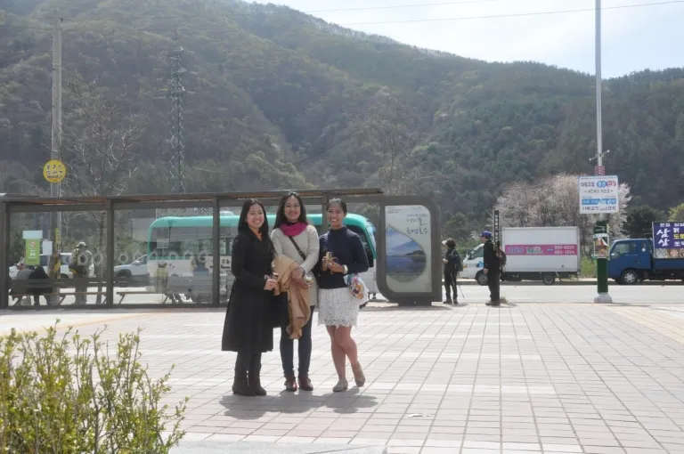 At Gapyeong Station while waiting for the bus to take us to Garden of Morning Calm. There is a booth outside the station where you can buy your pass. Admission is ₩9,000 on public holidays and weekends and ₩8,000 on weekdays. | Image credit: Wanders of Eve