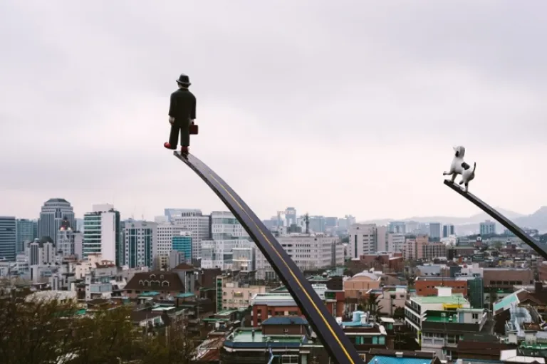 If you’re hard pressed for time and would like to get the most out of your trip to the village, the most captivating art pieces are found on Guldari-gil, which begins from the backstreets of Daehakno behind Marronnier Park at Hyehwa station (Exit 2) and goes up the hillside to the lower edge of Naksan Park and into the village, finally turning into Yulgokro 19-gil.