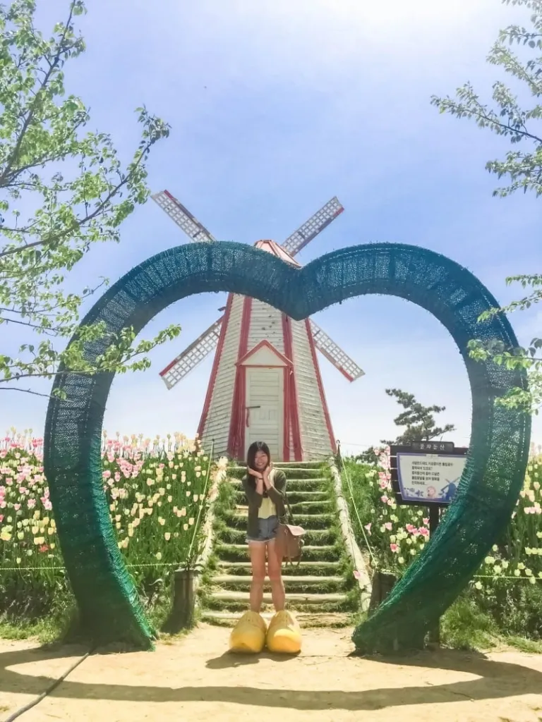 Taean Tulip Festival has a different theme every year and in 2016 when I was there, the theme was ‘The Garden of Artists’. Aligned with this theme, the impressive team behind the festival creatively used a wide myriad of colourful tulips, together with advanced planting techniques, to form renowned figures of Mona Lisa and Marilyn Monroe. It was truly a jaw-dropping art masterpiece! Viewing from the top of the observatory deck, I stood wide-eyed with mouth agape as my eyes remained glued to the panoramic view of Mona Lisa among the sea of tulips.