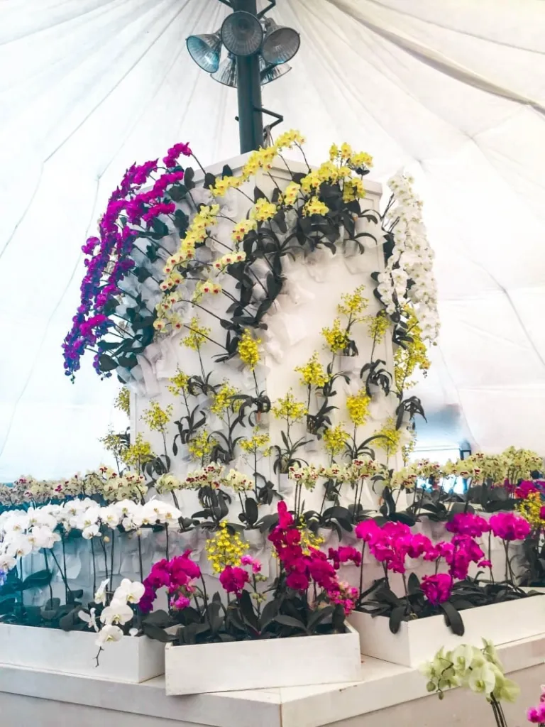 On top of that, if you’d like to beat the heat of the blazing hot sun, head to the tent that houses a minimalist indoor garden! Alongside the delicately fashioned orchid blooms, you get to appreciate the beauty of vintage armoires and old rustic farm equipment. There was also a room with orchid pots artfully arranged to form a decorative display of a heart shape.