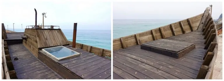 Besides the submarine, on display is a larger-than-life South Korean naval ship (pictured top) used in the Second World War, the Korean War and the Gulf War, as well as the Warship Pavilion (pictured bottom), a wooden boat used by 11 North Koreans who were trying to escape the North. It’s said that the voyage was made after a year of preparations to attain freedom in the South. And it ended in victory: they managed to arrive in Jumunjin of Gangneung in the South after four days!