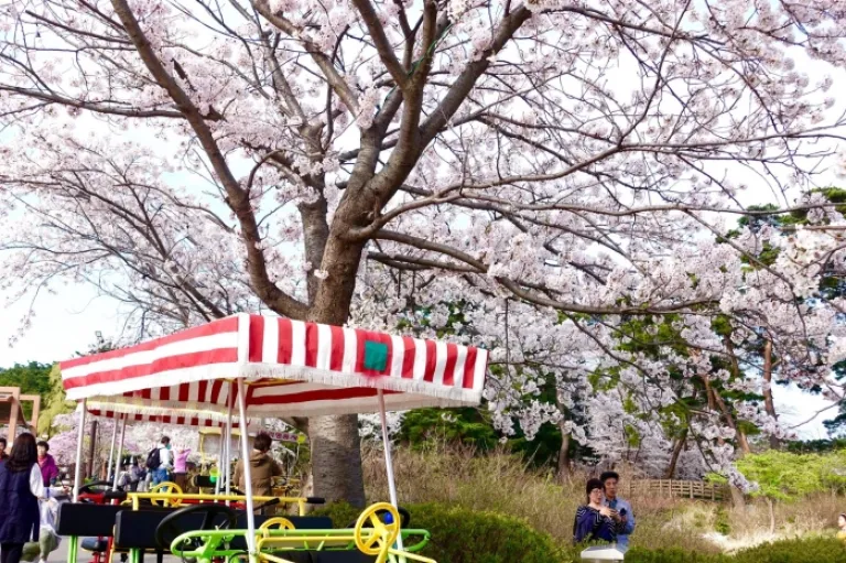 9. Cycle around in a four-wheeled trishaw during sakura season