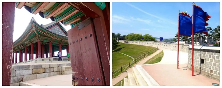 Think: the Great Wall of China, Korean edition. The Hwaseong Fortress is a UNESCO World Cultural Heritage Site, and surrounds the centre of Suwon. The fortress has four gates that each face the four cardinal directions – the Janganmun gate faces north, the Paldalmun gate faces South, the Changnyongmun faces east and the Hwaseomun gate faces west.