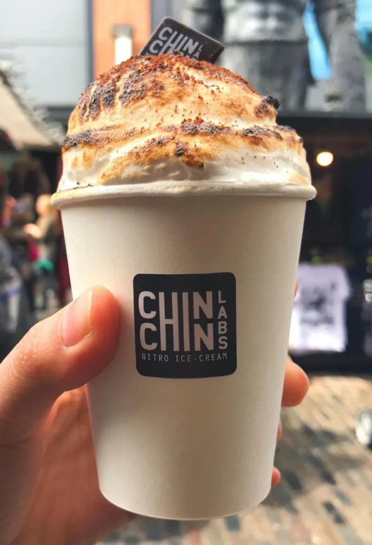 I admit I was initially sceptical about Chin Chin Ice Cream Lab because of all the hype and how picture-perfect their food was. This cafe at Camden Lock Market sells nitro ice cream along with a range of other desserts, and made for an enticing case of food review. Accordingly, I paid the cafe a visit and ordered both its Burnt Butter Caramel Ice Cream and Hot Chocolate with Toasted Marshmallows.