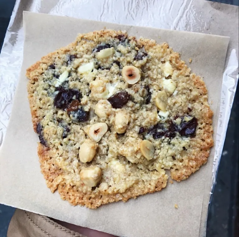 On the bright side, the cafe served an excellent cup of chocolate, which helped to soften the hard cinnamon bun when dipped in. The cafe’s thin oat cookie was also surprisingly good despite its pale colour. There was a generous amount of hazelnuts and chocolates in the cookie, making it crunchy, soft and sweet.
