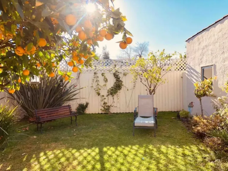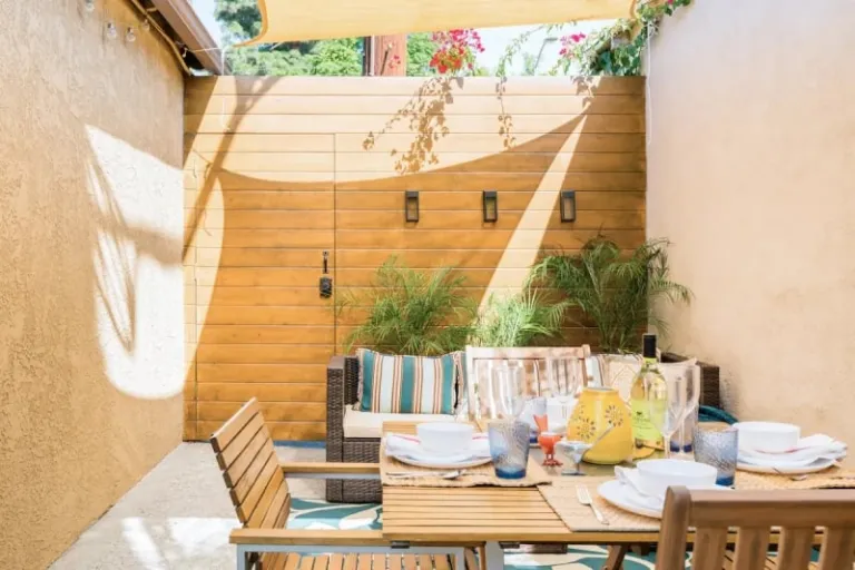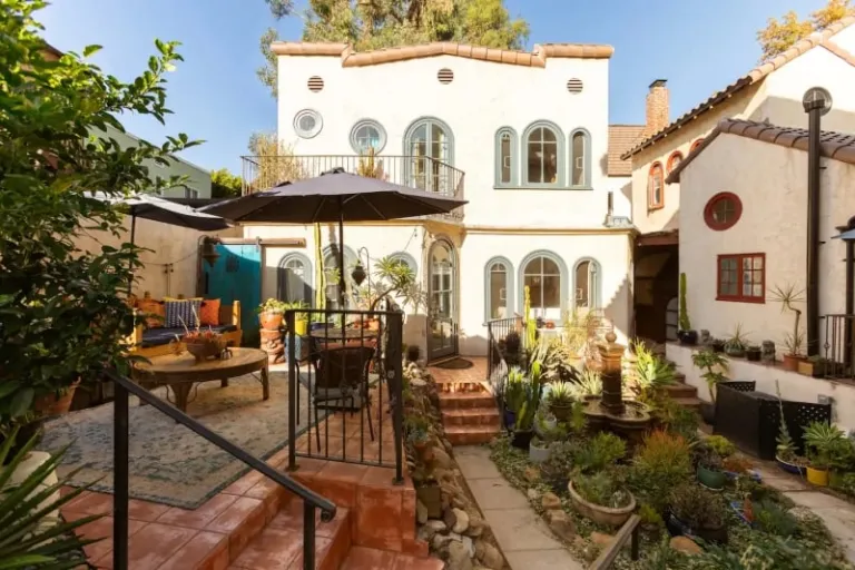 From wall paintings to plates, everything in this house is so flamboyant. Outside, there’s a shared backyard with a shaded table and seat for an afternoon tea session. It’s definitely one of the most beautiful Airbnbs in Los Angeles!