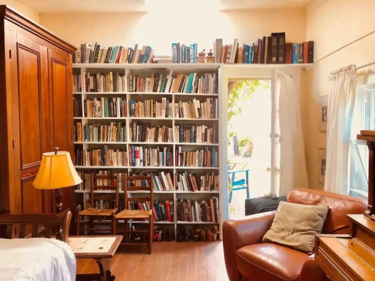 Nevertheless, the convenient access this home provides is not its only appeal. A big shelf full of books, its living room and bedroom look like the abode of a novel writer. With almost a century of history, this guesthouse’s courtyard also boasts a giant sycamore tree, an orange tree, a bench, and an outdoor lounge chair.