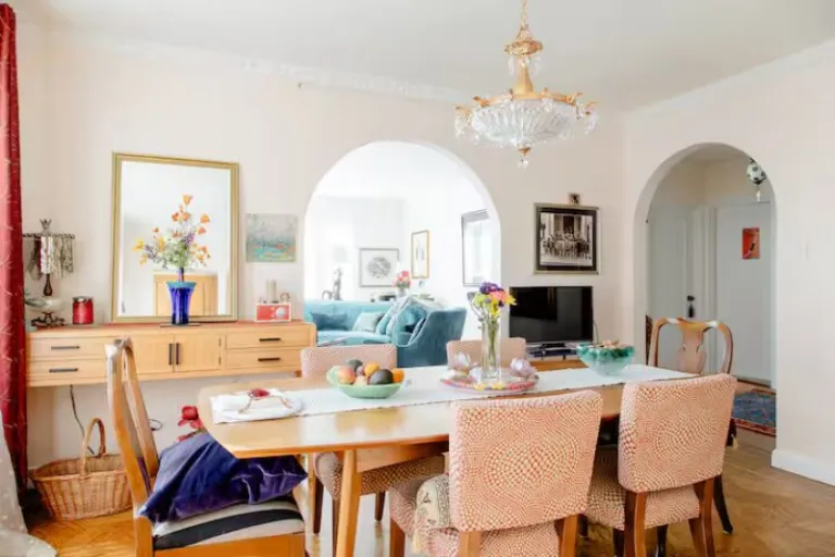 Spanning two levels, this condo provides three bedrooms, three and a half bathrooms, and a chef’s kitchen with premium appliances. The stylish dining and living areas make it perfect for group gatherings, while ensuite bedrooms offer privacy and luxury. Its location on a “slow street” creates a quiet, neighborhood feel, with beaches, restaurants, and the Presidio all within walking distance. It’s a standout choice for families or groups seeking an upscale San Francisco stay.
