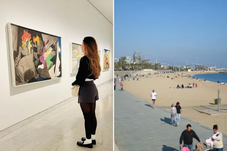 Picasso Museum (left); Barceloneta Beach (right) | Image credit (L-R): Picasso Museum Official Facebook Page; Wronsky Net