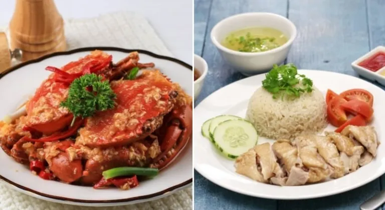 Chilli crab, Hainanese chicken rice | Image credit(L-R): Ika Rahma via CanvaPro; bonchan via CanvaPro