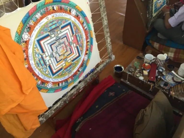 The traditional art of Tibet is heavily influenced by Buddhism. The ancient techniques of creating Buddhist art are passed down from teacher to student in their nine workshops, which include traditional painting, creating statues, making appliques, wood carving, weaving, and screen printing.