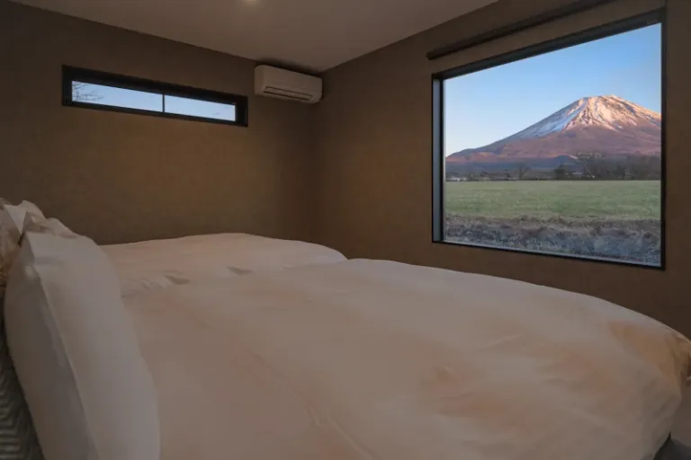 This hostel-style will be a refreshing experience for travelling friends who seek a comfy stay near the majestic peak. Aside from the stunning vista of Fujisan from the bedroom’s window, you’ll also be blessed with a cosy bunk bed and a single bed for sleep.