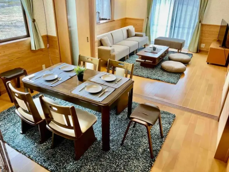 For those planning to travel to Japan in a large group, this stylish Airbnb near Mount Fuji welcomes you with open doors. The modern design embedded with a neutral colour backdrop gives the space a more welcoming and much cosier atmosphere — just the things you need for a peaceful getaway with your fun bunch.