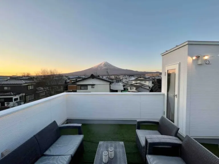 When we talk about the most scenic places to stay near Mount Fuji, this monochromatic vacation home will always make it to the list. Many spend their days on the rooftop that lets you marvel at Fujiyama’s panoramic views, and you should do that too! The top reviews also praised the host for keeping the space neat and clean at all times meanwhile, the amenities provided are brand new.