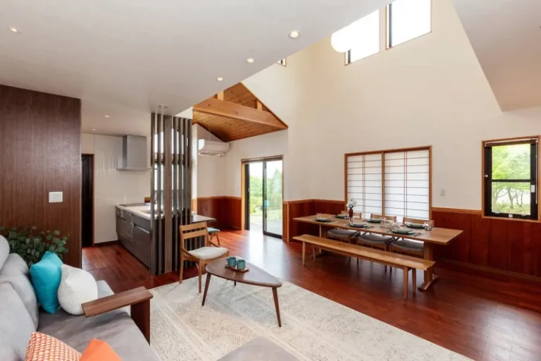 Among the best places to stay near Mount Fuji is this cosy cabin-like home with a wooden interior. The immaculate interior, plus the great lighting from every corner of the house, add a stylish and warm touch to the space.