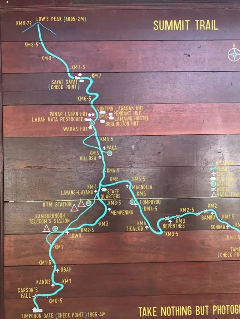 Our guide was Mr Aling, a Sabahan with over eight years of experience and 800 climbs of Mount Kinabalu under his belt. Right from the get-go, we knew that we were in good hands. He shared that from the Visitor Centre, we will drive 4.5km to Timpohon Gate, where we will begin our ascent on foot. Timpohon Gate stands at an altitude of 1,866m (6,122 ft). The route from the Gate to the summit is 8.72km long and features an elevation gate of 2,229m (7,312 ft).