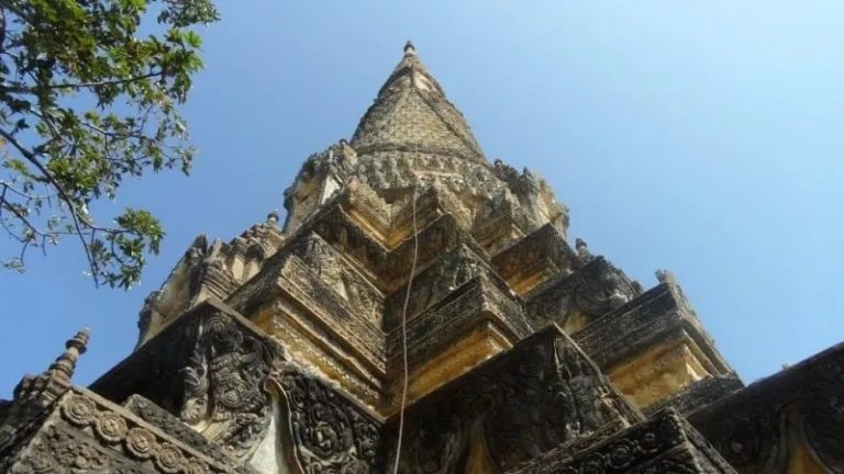 The large Temple of Arthaross stands in a state of battle-scarred ruin, having been blown up by the deadly Khmer Rouge. Within the crumbling walls, however, you’ll find a new golden Buddha statue that glints and gleams in the sunshine.