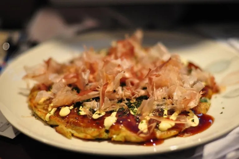 If you want to eat what you like (literally), then Okonomiyaki is a must-try street snack! Okono means ‘what you like’ and yaki means ‘grill’. Okonomiyaki is a savoury Japanese pancake made of flour, eggs, shredded cabbage and a variety of ingredients or condiments of your choice. It is drizzled with Japanese mayonnaise and a thick brown sauce, and garnished with bonito before serving.
