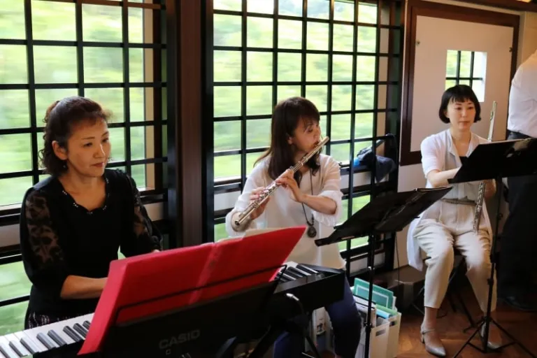 It would also be interesting to see the live performance after the shrine tour, from Hotaka to Shinano-Omachi, featuring traditional instruments and folk songs. You’ll get to adjust the rotating seats based on your preferred view too, or just watch the live-cam showing scenes from the front of the train.