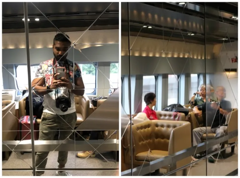 There’s another cabin I call “The Selfie Section.” It’s not the actual name, but as you’ll figure, I shot heaps of self-taken pictures here using the mirrors stretched across one side of the cabin. If you like geometrical shapes like I do, then you’ll probably lounge in the sofas in this area for a while before moving on to my personal favourite zone.