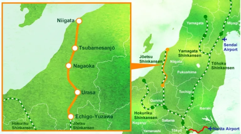 Route: Echigo-Yuzawa ↔ Niigata on the Joetsu Shinkansen Line
