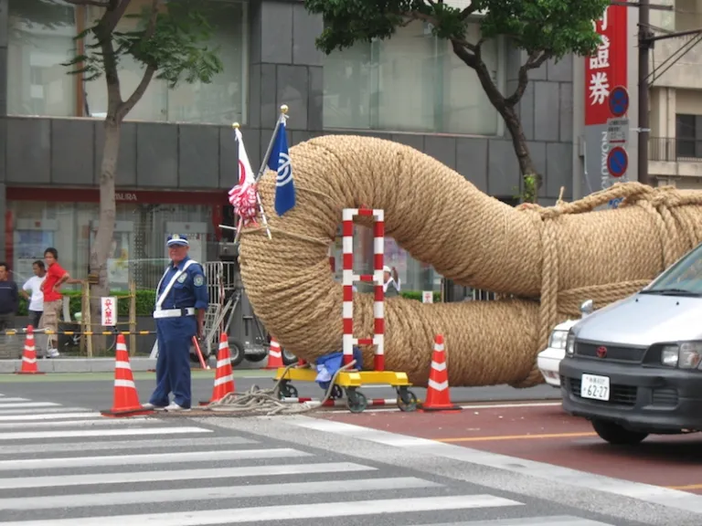 The formidable rope was registered in the Guinness World Records as the largest rope made of rice straw in 1995 and 1997. Its total length was 186 metres, with a diameter of 1.59 metres and weighing 40 tons and 220 kilograms when it broke the world record in 1997. Even though Naha no longer holds this world record, the rope continues to grow over the years. The rope is formed by connecting the female rope “miinna” and the male rope “ouunna” ceremoniously with a huge stick called “kanuchibou.”
