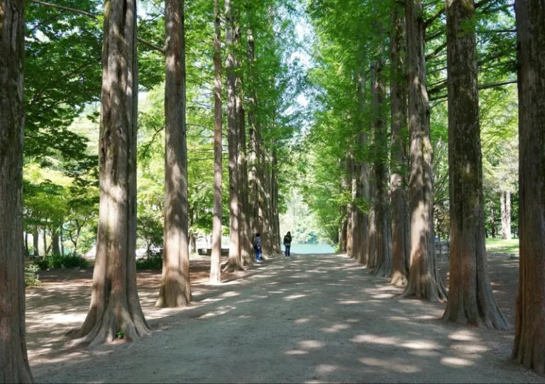After about an hour’s drive and a short ferry ride later, we arrived at Nami Island! Our eyes eagerly took in the lush foliage and greenery. You can either explore the island on foot or rent bicycles to get around. It only took us about 20-30 minutes to walk from the entrance to the other end of the island. Nami island is known for its incredibly photogenic metasequoia lane where the famous Korean drama, Winter Sonata, was filmed.