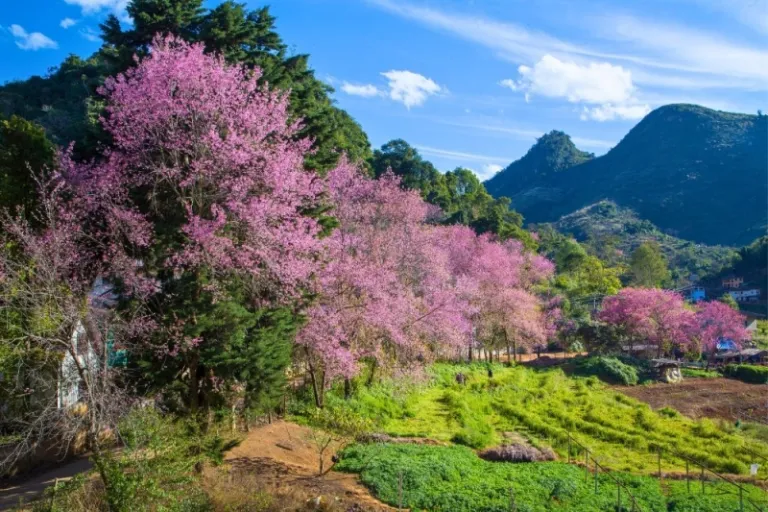 Forget about Japan when you want to view cherry blossoms, because this place is home to these dazzling pink flowers too! Doi Ang Khang and its royal agricultural station is situated in Chiang Mai, Thailand which borders Myanmar and stands at 1,400 meters above sea level. Adorned with lush forests and colourful floral gardens, this Chiang Mai attraction provides a scenic escape from bustling urban life. The myriad of flowers, mountains, and valleys here makes it a haven for nature lovers and avid photographers.
