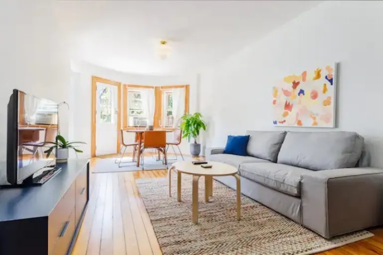 Where to start with this gem of an apartment? This newly renovated Airbnb in Brooklyn lets you live in the lap of luxury with a furnished kitchen, a full-size sofa in the living room, a large bathroom, a hot tub, and a king-size bed in the master bedroom. Don’t miss your chance to lay back on the La-Z-Boy sofa in front of the 42-inch TV or soak in the Jacuzzi.