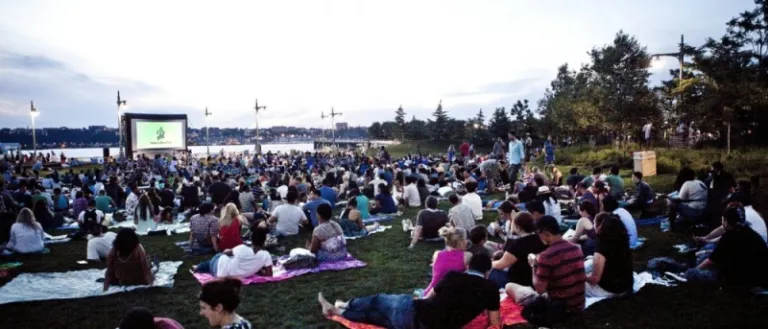 There are several locations where outdoor movies can be caught. Every Thursday during summer, Movies with a View at Brooklyn Bridge Park attracts over 7,000 moviegoers to enjoy popular screenings and a breathtaking Manhattan skyline in the background. This summer, the movie lineup includes The Lego Movie and 42!