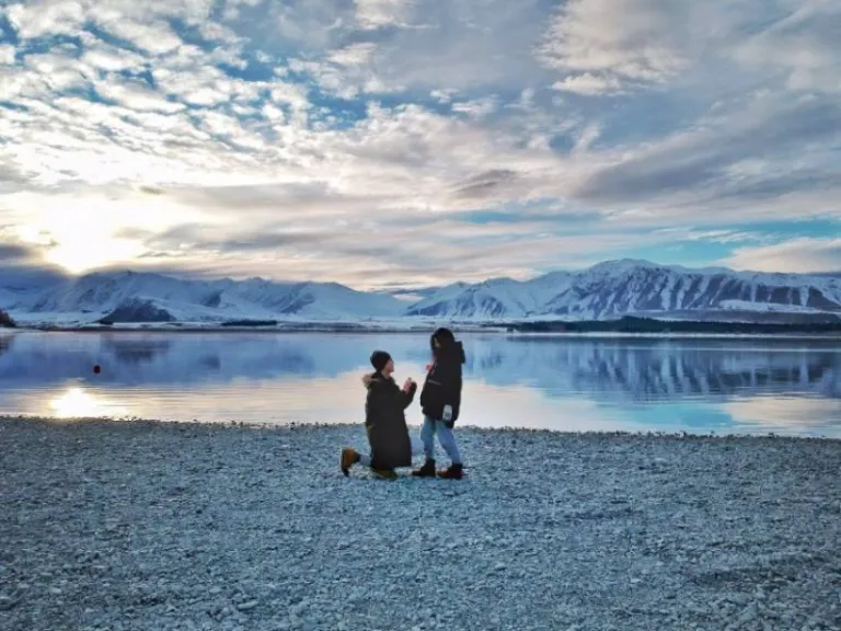Spend the night at Lake Tekapo Motels & Holiday Park. It costs NZD50 a night for a powered site. Literally, paying for the view and electricity hook up. I recommend alternating the days between powered sites and freedom camping because you get to charge the campervan (which means your devices too) and it is friendly on your wallet as well. The view at this holiday park was gorgeous. My proposal took place the following morning right after sunrise!