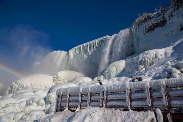 As winter sweeps across North America and temperatures drop below zero, travellers were treated to the sight of a rainbow appearing over a partially frozen Niagara Falls, which has transformed into a winter wonderland. Visitors dropped by on Sunday, 21 Feb 2021 to witness this popular attraction blanketed in ice and snow. Here are a few feel-good photographs from the lucky travellers who happened to be in the area, captured from both the Canadian and American sides of Niagara Falls.