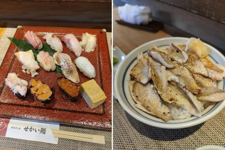 With your ride for the next few days sorted out, it’s time to enjoy your first proper meal in Japan! Head to Sekai Sushi, one of the top sushi restaurants in Niigata City. While everything here tastes incredible, we recommend getting the Kiwami Sushi Platter. Simply put, this Niigata specialty consists of 10 pieces of the finest sushi that’s made using local ingredients. These include uni, toro, ikura, and other toppings that change according to the season!