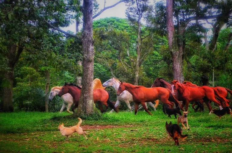 This is not an ordinary sanctuary where animals are put into cages. The place is a piece of heaven on Earth where dogs can run freely with horses, roam and explore the woods, and play all day long.