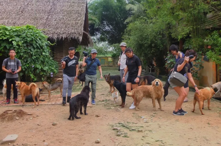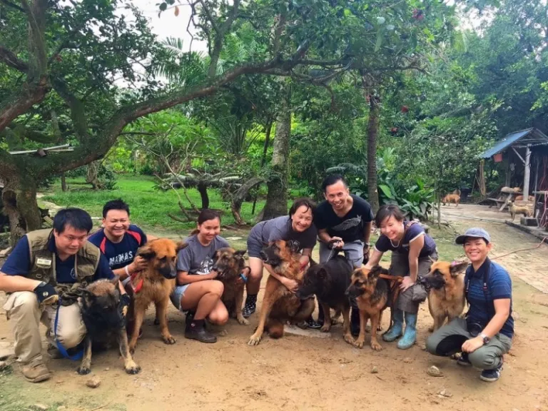 Group of volunteers and photographers during our visit at Noah’s Ark who posed with these beautiful doggies