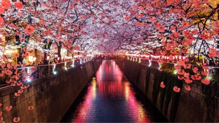 Tokyo is full of cherry blossom-viewing spots that are postcard-perfect. If you’re visiting the city during springtime, you can have a wonderful hanami experience in the residential neighbourhood of Nakameguro. Over 800 sakura trees grow alongside the Meguro River, turning the streets into a pink and white paradise. When evening falls, the riverside promenade bedazzles with the nighttime lights.