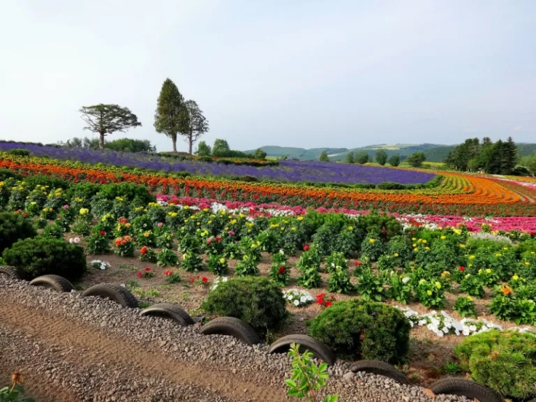 Start off your day in Biei with – that’s right – more flowers! Shikisai-no-Oka is the largest panoramic flower garden in Hokkaido. The breathtaking rainbow of colourful flowers set against a backdrop of dramatic mountains makes for a pretty spectacular view. Truly a flower paradise!