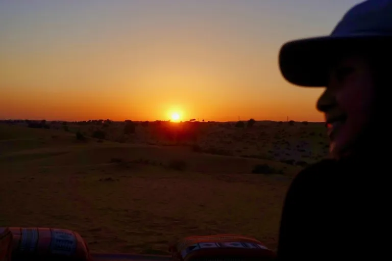 Lastly, end the night by huddling around a campfire. We recommend visiting the desert during the winter season; the temperature hovers around 25 degrees Celsius in the day and drops to about 12-15 degrees Celsius in the night. If you visit during the summer, day temperatures can go up to a sweltering 41 degrees Celsius and remain around 30 degrees Celsius in the night. Trust us, visiting the desert during the winter season is a much more comfortable experience!