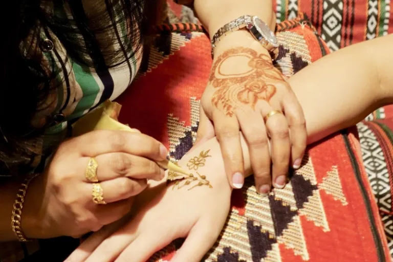 Henna tattoos are temporary and often last for an approximate duration of two weeks. Do take care to not to smudge the henna and let it dry fully before allowing the dried bits to flake off or you’ll be stuck with any smudging for two weeks!