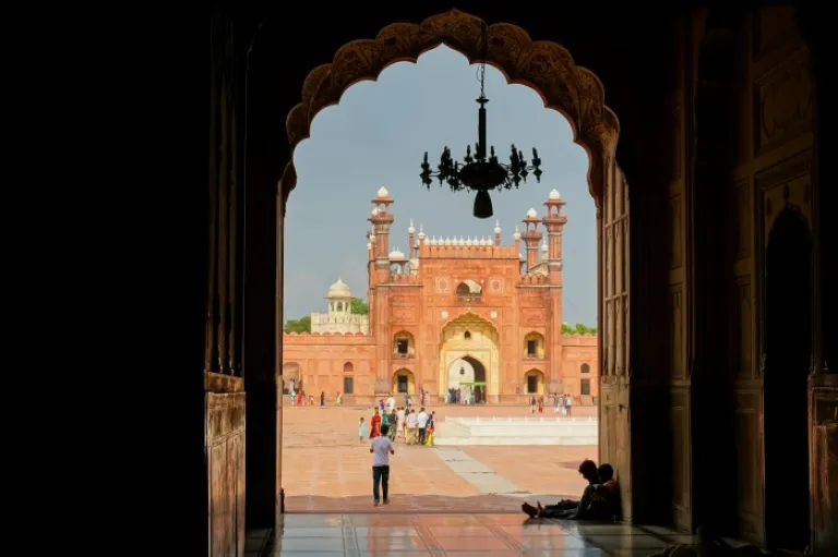 The archway and ceiling patterns of the Badshahi Mosque are a must to capture.