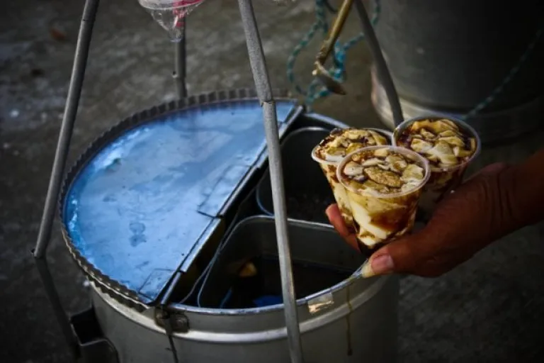 This sweet slush is made from banana or vanilla-flavoured frozen condensed milk. The origin of iskrambol dates back to the 1970s when it was popular as a street food in Manila. Iskrambol stalls are usually stationed near elementary schools or high schools to cater to kids in need of a sweet fix.