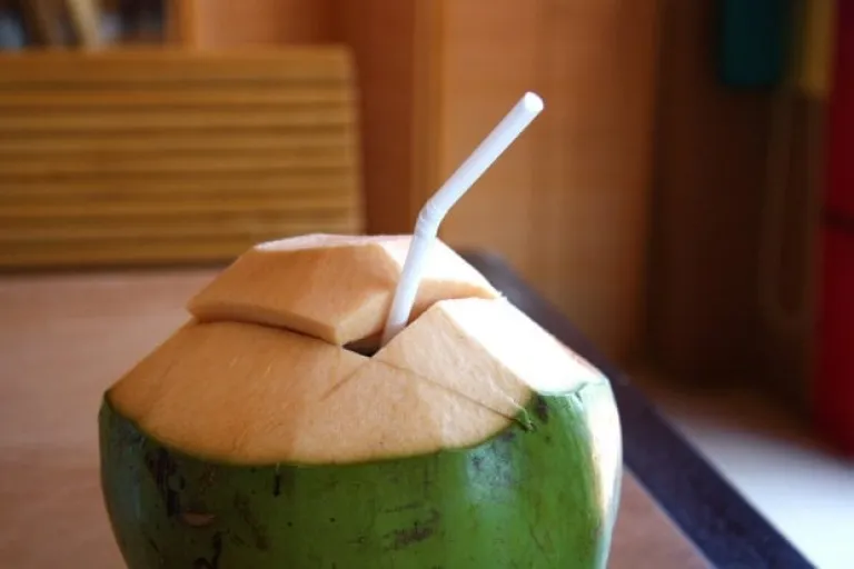 Being in a tropical country, the Philippines is blessed with coconuts. Street vendors simply slice the topmost part of the shell and then serve it. After drinking the juice, you may ask the vendor to give you something to scrape off the juicy flesh with.