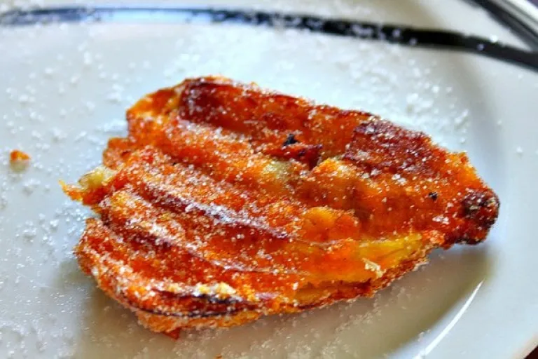 Derived from the Filipino term “paypay”, bananas are partly divided and spread to create a fan-like shape. They are then coated in flour with a pinch of achuete, deep-fried and sprinkled with white sugar. They are also called maruya.