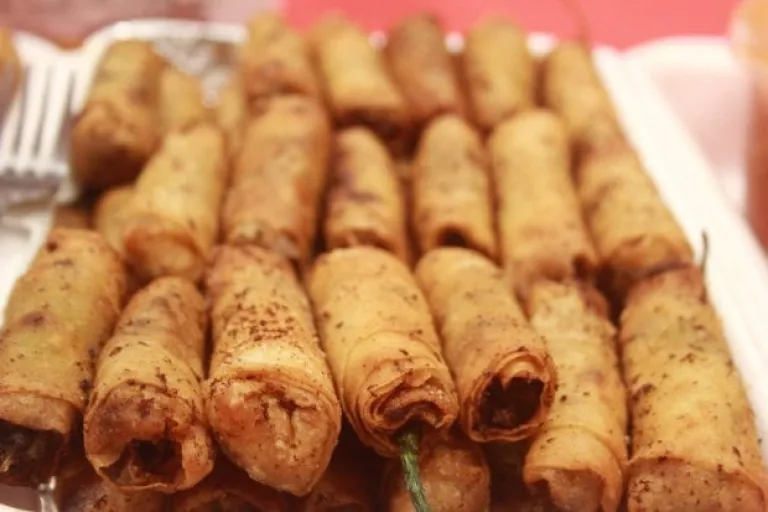 A variety of fried vegetable spring roll, lumpiang togue is stuffed with sautéed mung beans rolled in egg wrapper, and then fried until golden brown. Best paired with spiced vinegar, this snack is available in pungko-pungko.