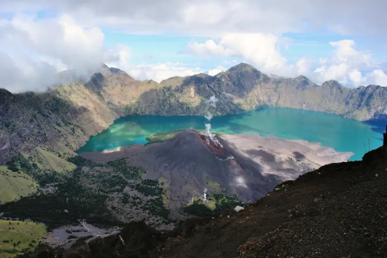4. Admire the Segara Anak Lake and catch a glimpse of the smoking volcano