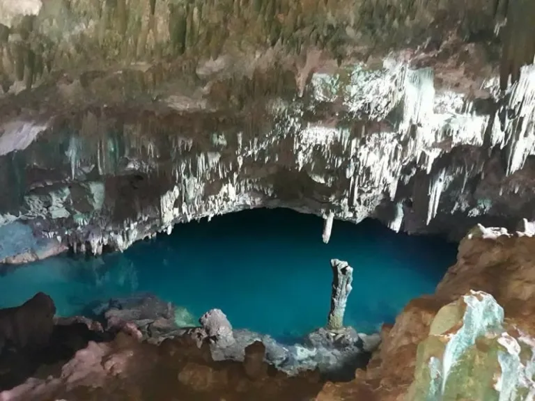 7. Float in the saltwater pool of Rangko Cave and observe natural wonders like stalactites, stalagmites and even fossils