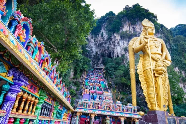 The rainbow staircase leading to Batu Caves is bright, bold, and instantly eye-catching. Early mornings offer soft light and fewer visitors, giving you a clear shot of the stairs’ vibrant colours. It’s playful and lively, making it perfect for a standout post.
