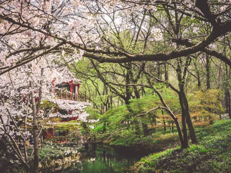 The Vibe: Gentle streams flowing under arched bridges, lined with weeping cherry trees.